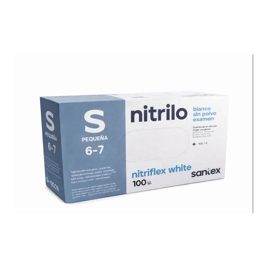 GUANTE NITRILO SIN POLVO BLANCO S