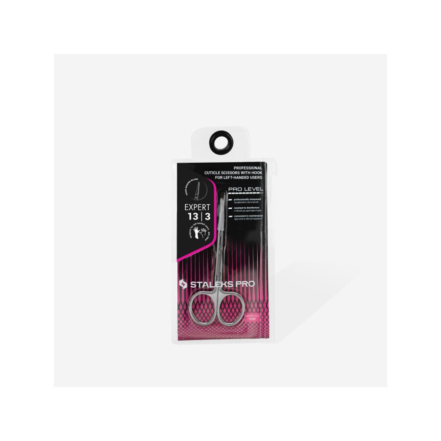 Staleks Tijeras Expert 13/3 para profesionales zurdos. Fabricadas en acero quirúrgico y afiladas a mano con diamante que facilitan un corte suave y preciso.